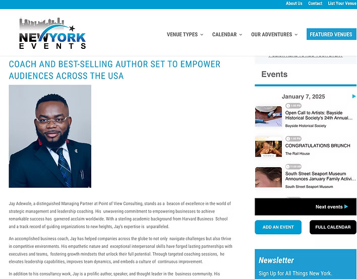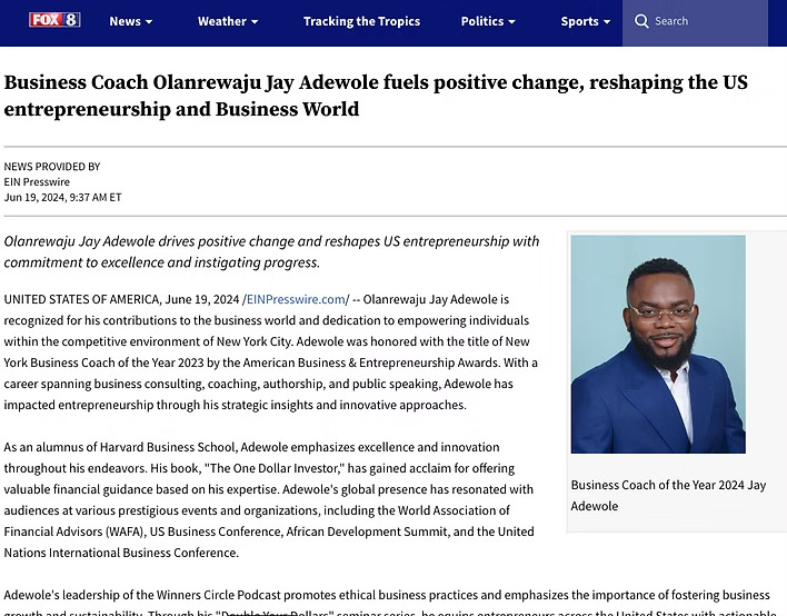 Jay Adewole has been featured in written media, digital publications, and business platforms sharing insights on leadership, growth, and entrepreneurship.